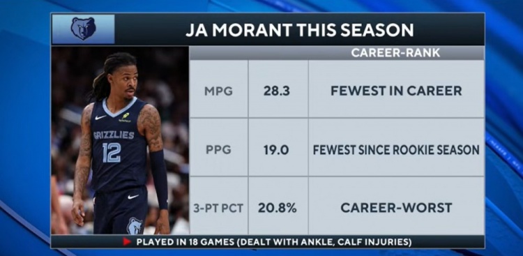 被摆上货架!莫兰特场均28.3分钟19分三分命中率20.8% 均生涯新低